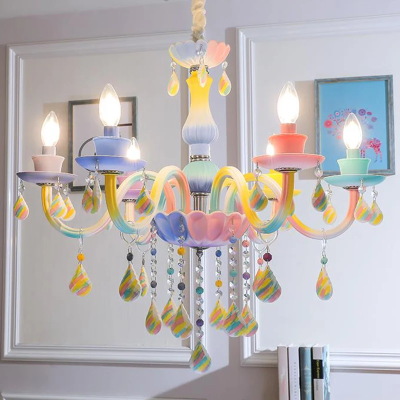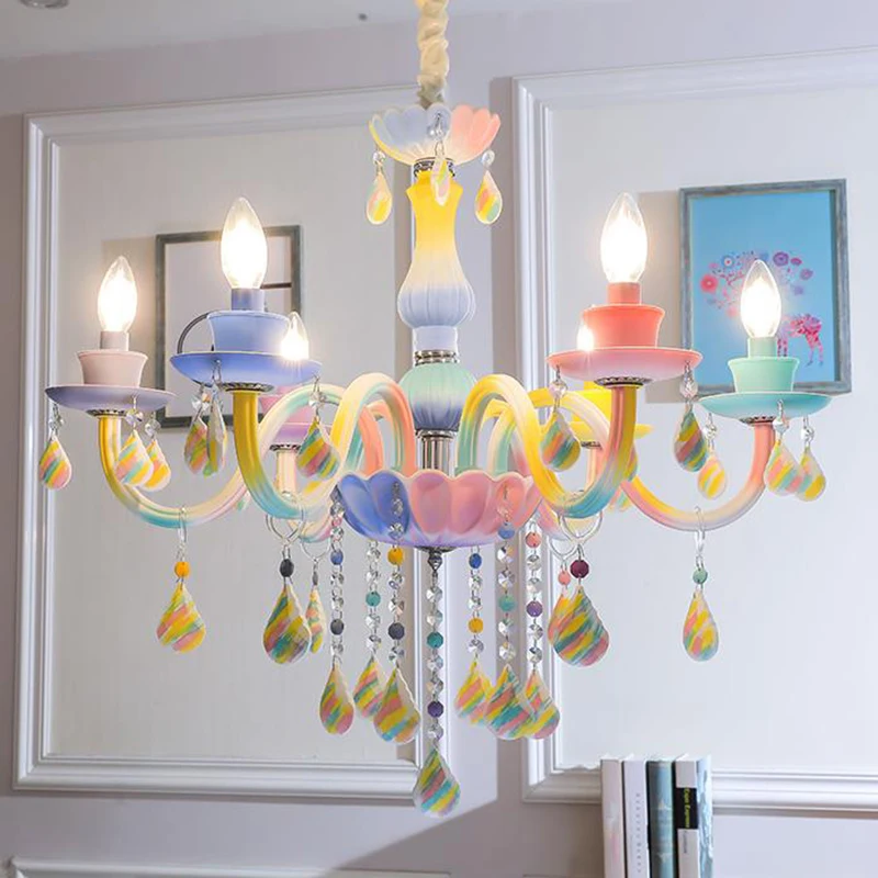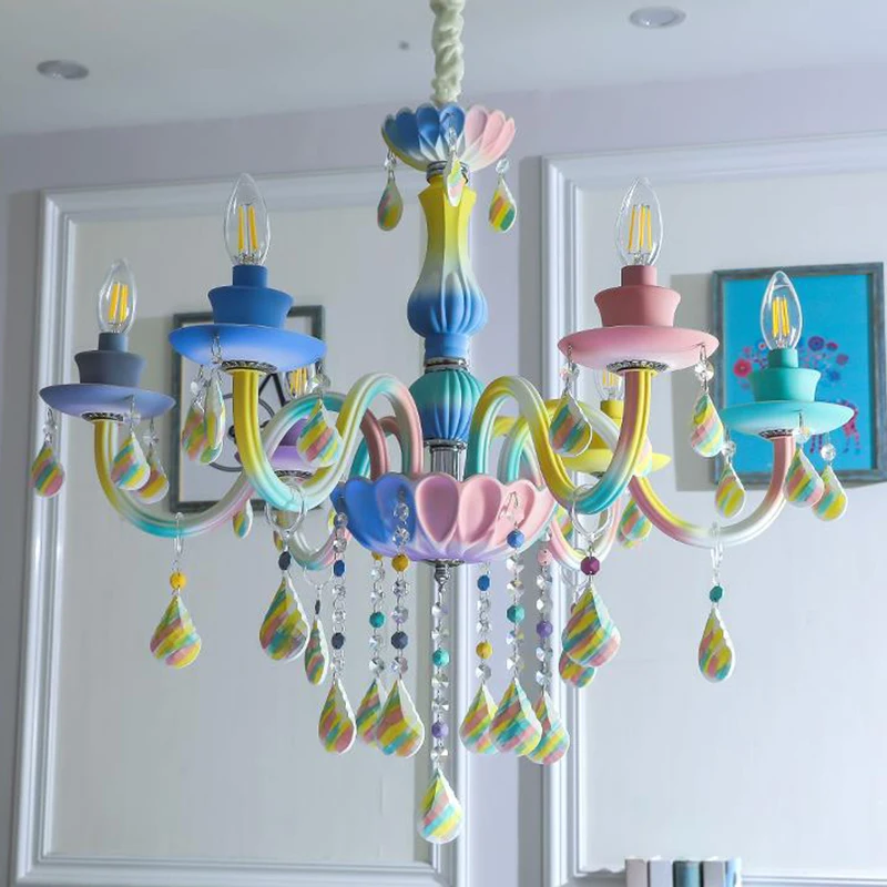 Best place to buy Art Deco cartoon rainbow LED crystal chandelier lights Macaroon girls' bedroom chandelier with remo