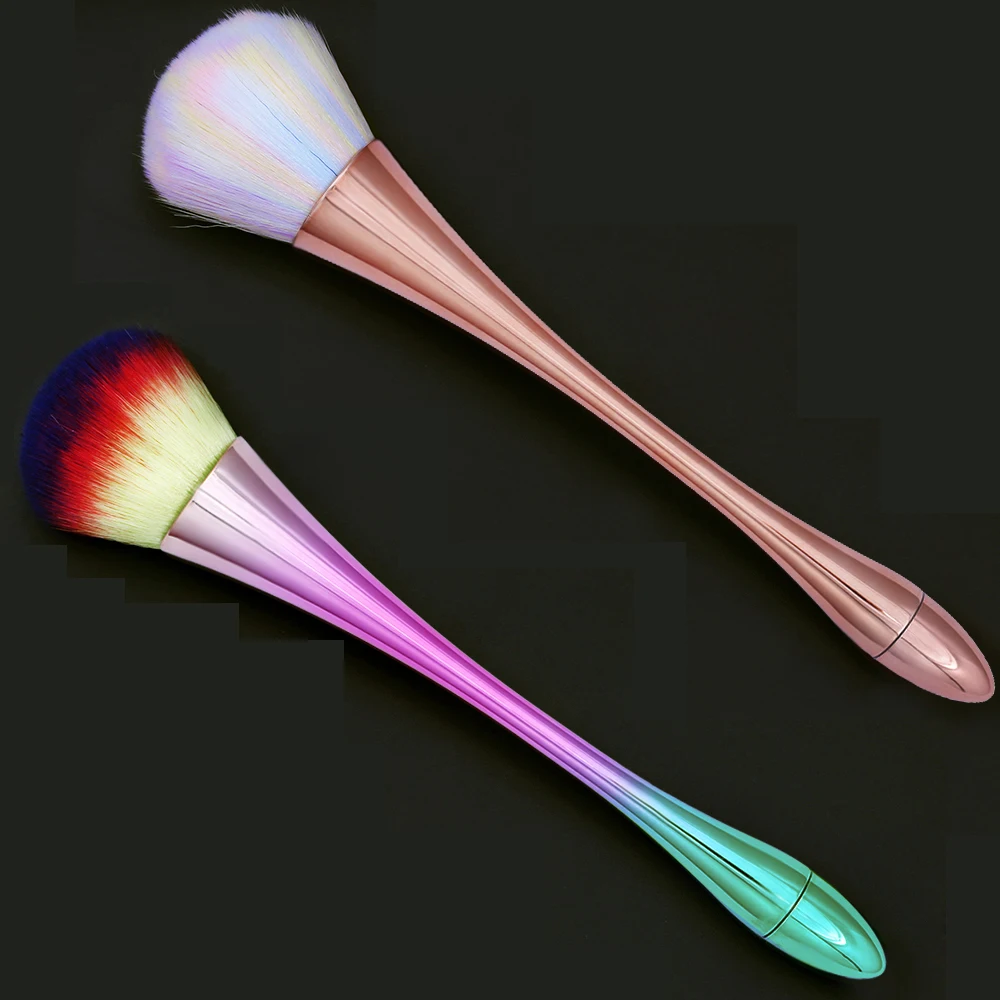 Luxury 1pcs Nail Brush Cleaning Remove Dust Brush Gold /Rainbow Aluminum Handle Brush Clean Face Nail Tips