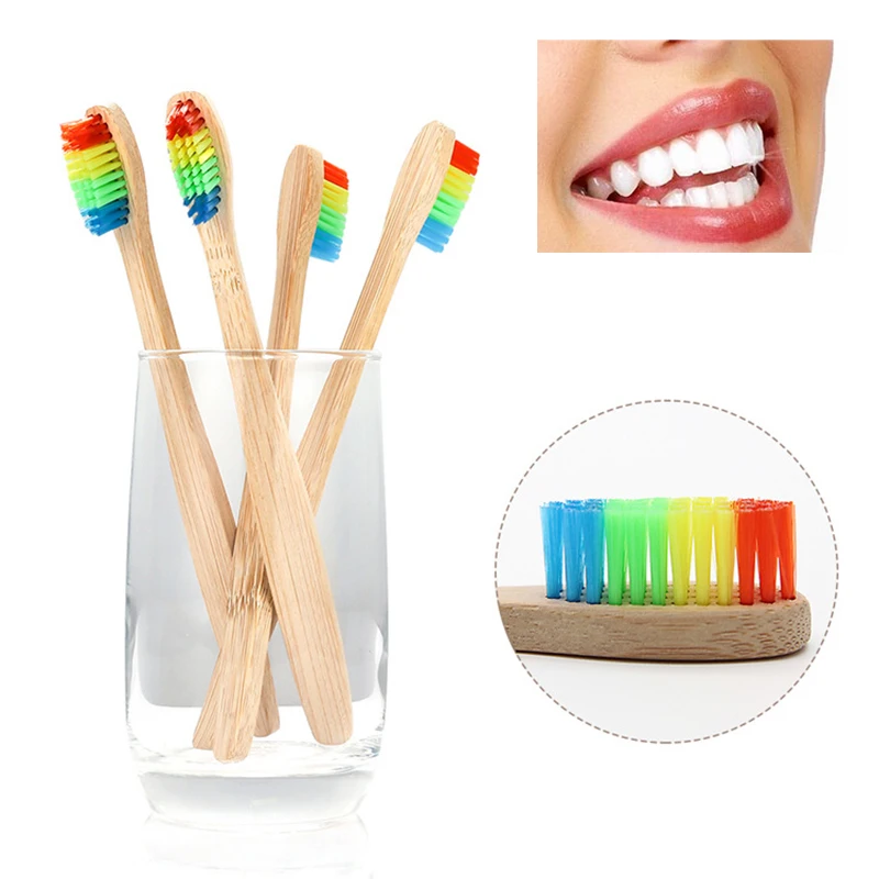 Sale High Quality New Hot 1/4 Pcs Toothbrush Bamboo Wooden Handle Rainbow Soft Bristle Oral Care Tooth B