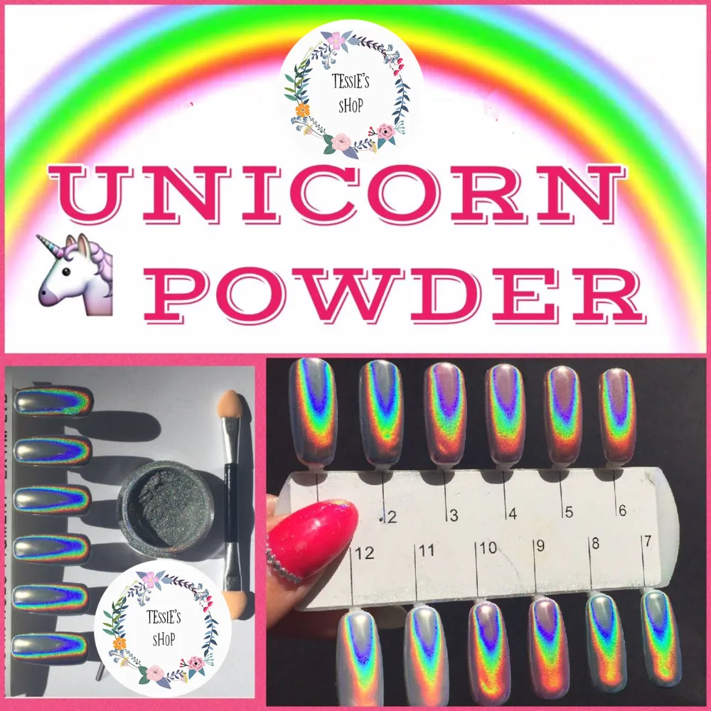 Refurbished tessie shop Net weight 0.5 grams HOLOGRAPHIC RAINBOW UNICORN HOLO SILVER PIGMENT MIRROR POWDER PIGM